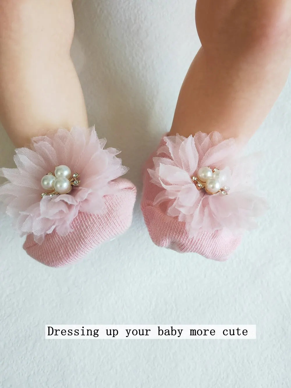Experience the ultimate in comfort and style with the Cute Pearl Bows Baby Headband Socks Set. Made from high-quality polyester, these socks are durable and easy to clean, ensuring long-lasting use for your little one. The socks feature a non-slip cotton material, making them comfortable and safe for your baby as they learn to walk or crawl. The charming floral pattern adds a touch of girlish elegance to any outfit, making these socks perfect for any weather all year round. And with a matching headband included, your baby will be the most fashionable and adorable little girl at every occasion. Don't miss out on this versatile and beautiful set that is guaranteed to be your little one's favorite gift!