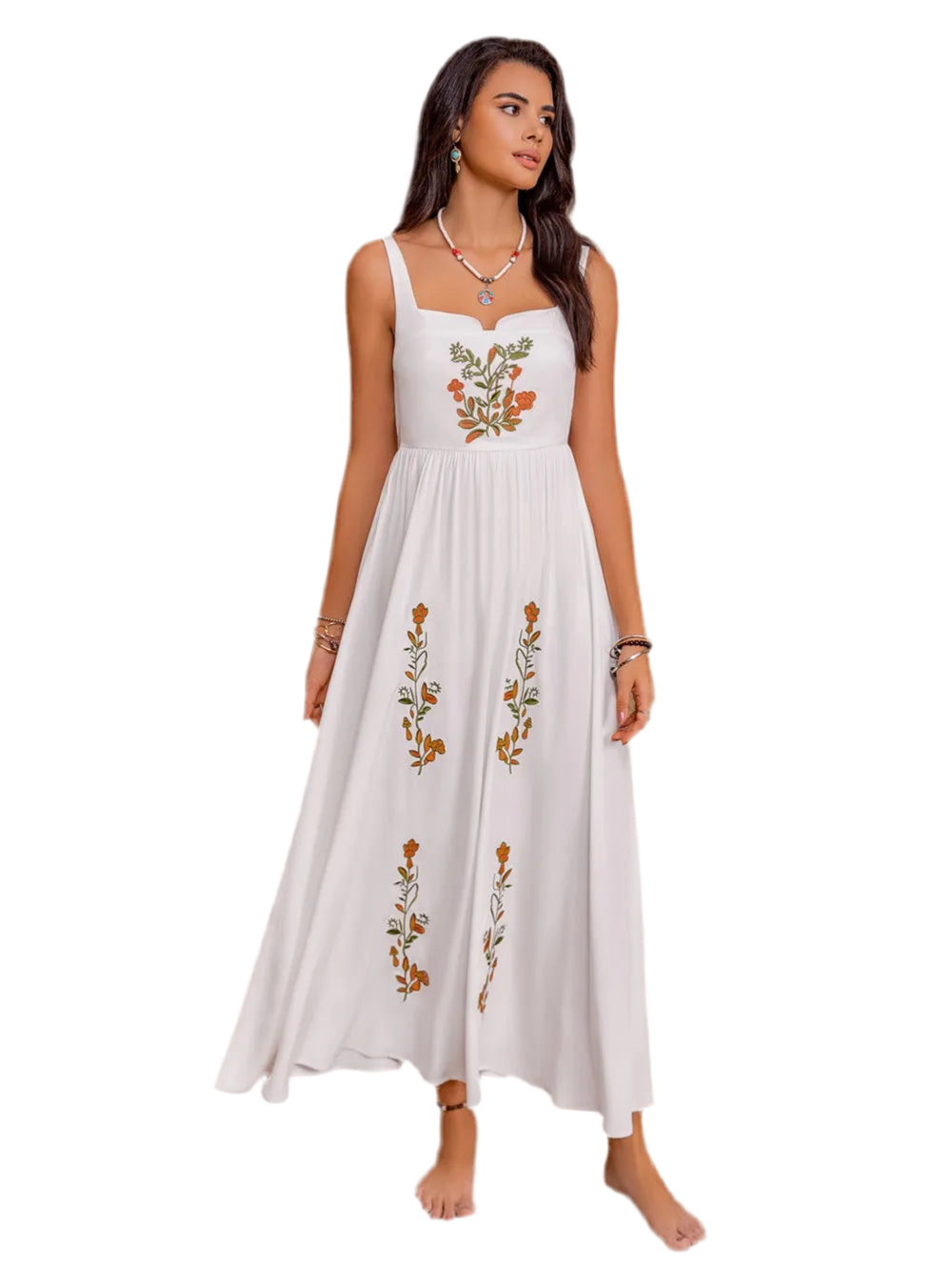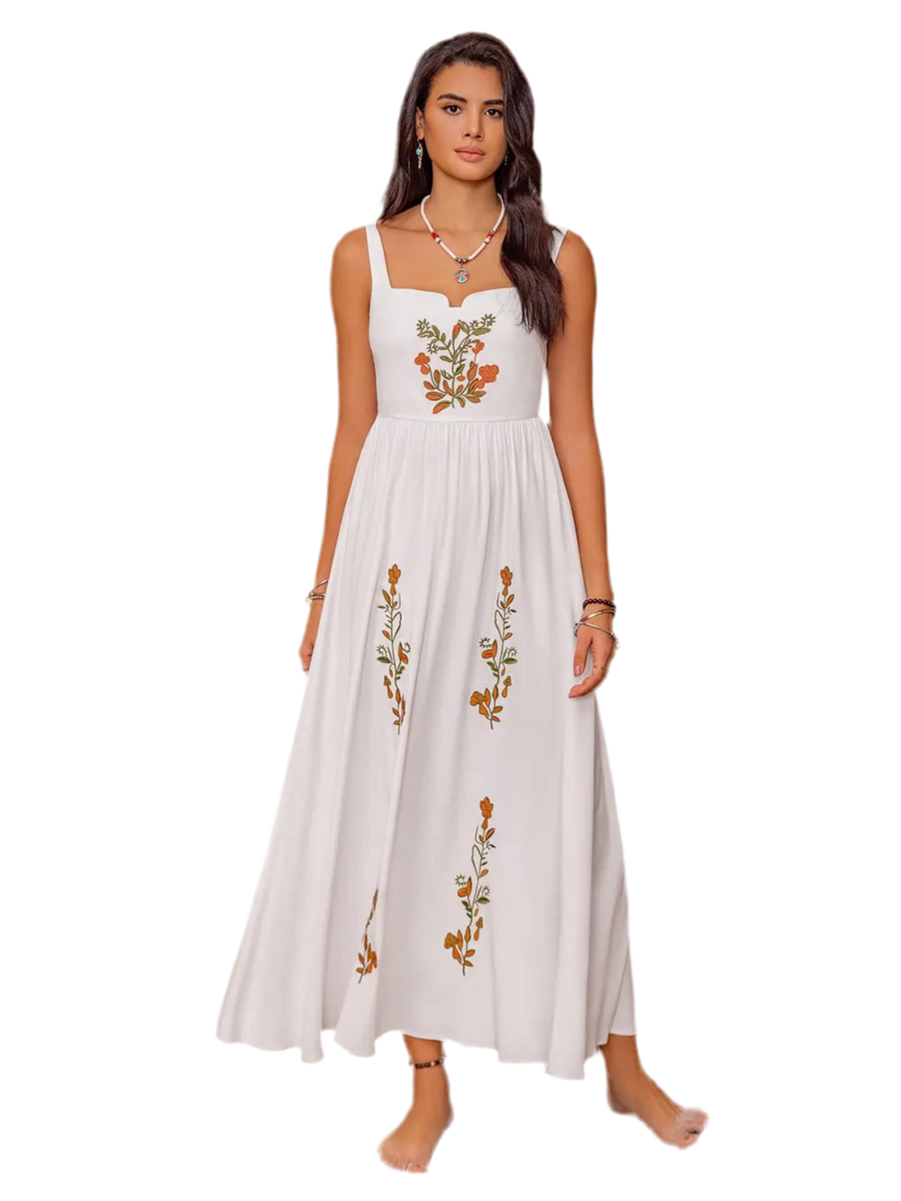 Floral Embroidered Sleeveless Maxi Dress