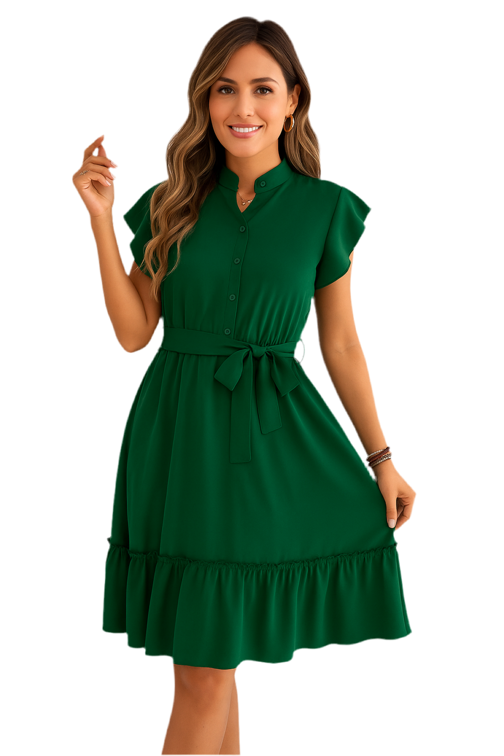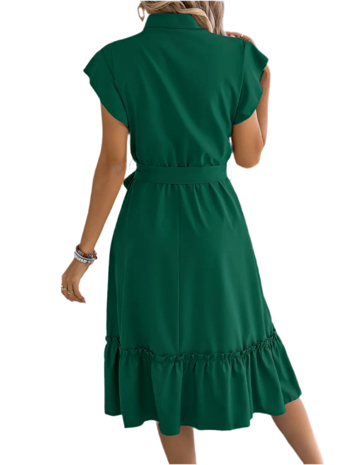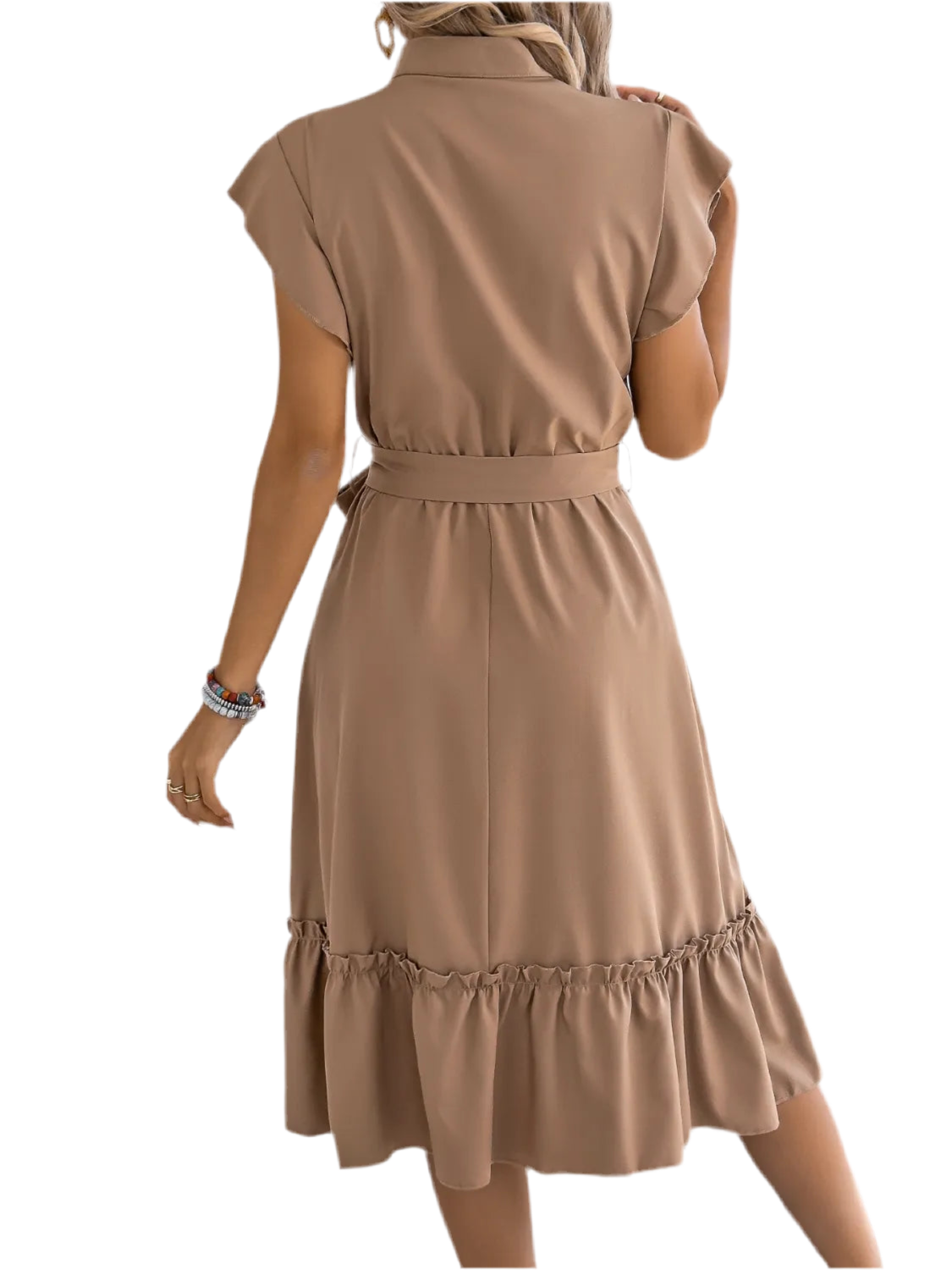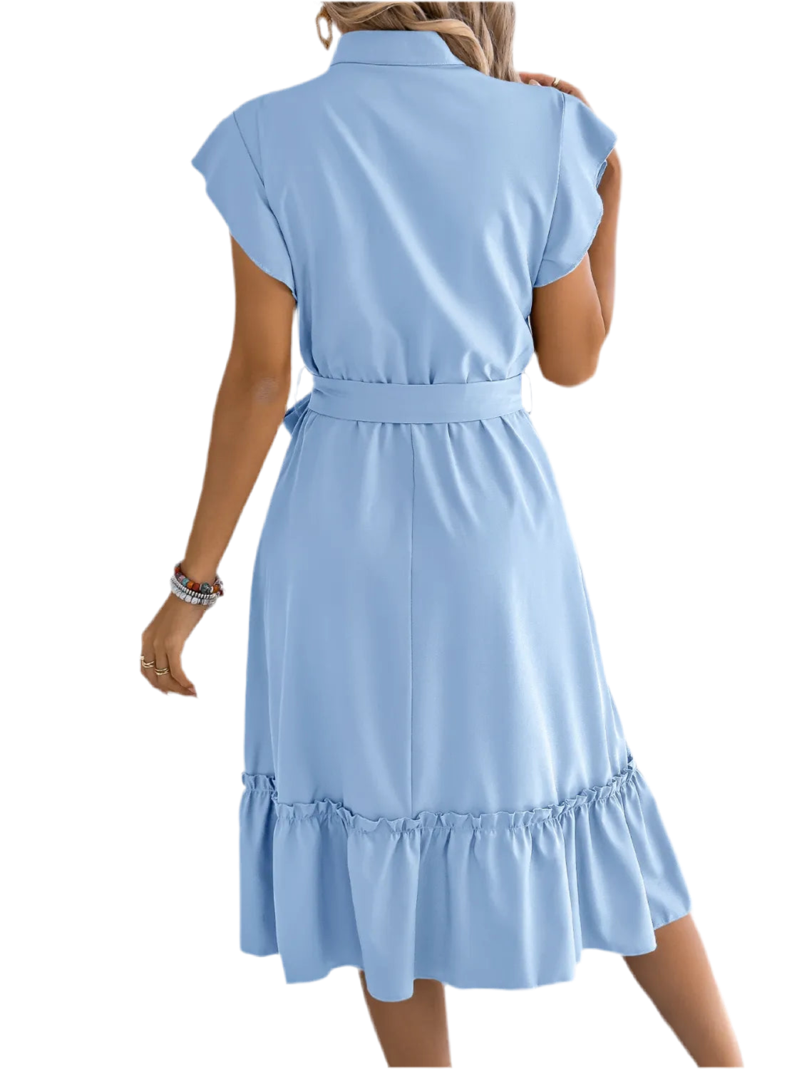 Tie Waist Ruffled Cap Sleeve Dress